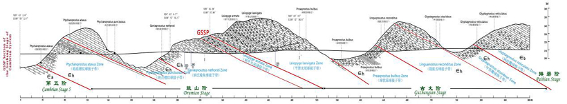 古丈阶“金钉子”位于古丈县罗依溪镇酉水河西岸,是国际地质科学联合会于2008年批准的寒武系全球年代地层单位,是该系的第七个阶(隶属于暂未定名的第三统),距今约5.03亿年。“金钉子”处于罗依溪剖面的一套灰岩地层内,在车夫组(Є2c)下段,与全球分布的光滑光尾球接子三叶虫的首次出现层位一致。这是第六个以我国地名命名的全球标准地层单位,也是湖南省第二颗“金钉子”。