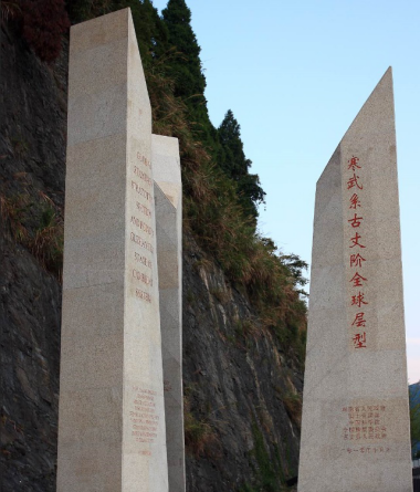 Located in the northwest-southeast slope zone on the southeastern edge of the Yangtze Platform, Luoyixi Section belongs to the paleontological mixed zone transitioning from shallow sea to deep-sea. The gravity flow sedimentation is very developed. The section is made up of marine carbonate rocks and its biological phase is stable, containing highly differented "slope-phase trilobites" mixed with benthic type at the platform and the plankton in the wide sea. Prof. Peng Shanchi with the Chinese Academy of Sciences proposed to use the FAD of trilobites Lejopygelaevigata that is globally distributed to define the bottom boundary of Stage 7 of the Cambrian system (Guzhangian Stage), the GSSP is located at 121.3m above the bottom boundary of the Huaqiao Formation (now the Chefu Formation). |