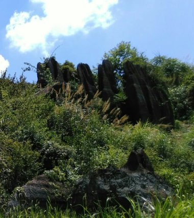 Luota StoneForest is located in Maokou Formation (P2m) ofthe Mid- Permian system.Lithologically, it is made up of a very thick layer of weak dolomitic mudstone containingchert banded limestone. Itis structurallysituated in the northwest wing of LuotaSyncline, with agentle occurrence. The stone forest mainlyoccurson depressions andslopes on both sides of thedepressions. The stone forest is sparsely distributed at the slope top,although the individualsize is large. The stone forestcovers an area of about 2.5km2,with aheightof generally 6~15m,andthehighest one can be more than 20m. The diameter is 4~13m. Individualstone column hasdifferent shapes, such as column,cone, wall, slab, cluster,and castle, etc. Among them, there are six double stone pillars looking like the horns on the sheep head.Hence they are called “SixSheep” Stone Forest. The stone pillars arelifelike,in the shapes ofhumans and objects. Among the most characteristic are theLabyrinth,Elephant’s Soul,ImmortalFinger,Lovers’Rock,Six Gates,Celestial Soldiers,Bulls Greeting Guests,Roosters Heralding the Daybreak,MushroomStoneGate,Rose in Desert,CamelLooking Back, etc.The stone pillars are mainly formed by flowing watererodingalong joints,and fissures. The stone pillars are made up of pure limestone and the lowerbasic parts are composed ofchert banded limestone.