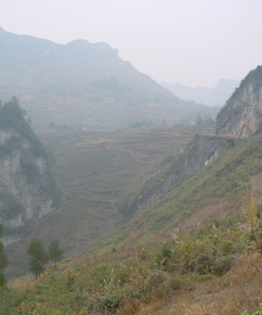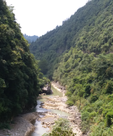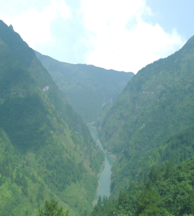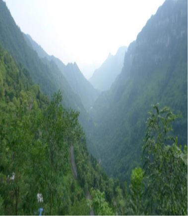 Two sides of the valley are exposed in the Permian system. Lithologically, the valley is made up of siliceous banded limestone, limestone, calcite dolomite and dolomitic limestone.The valley is 20-50m wide at the bottom, 300-600m wide at the upper part, 2.4km long and 260m deep. It is V-shaped, running in a direction of65-245°.The upper part on the right side of the valley isdominated by farmlands,with aslope is gentle,with a gradient of40-80‰; the slopeareason both sideshave a slope of 50-60°,wherevegetation is developed, and a large amount of debris flow depositscan be found in the upper part of the valley. Thevalley is formed by the fault structure and rain erosion anddissolution. |