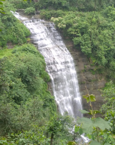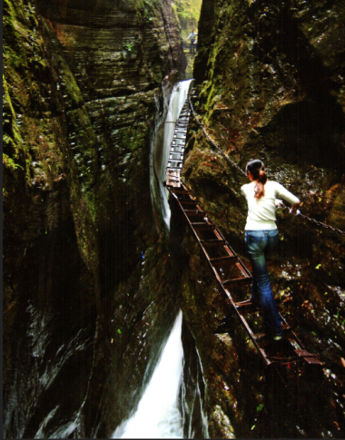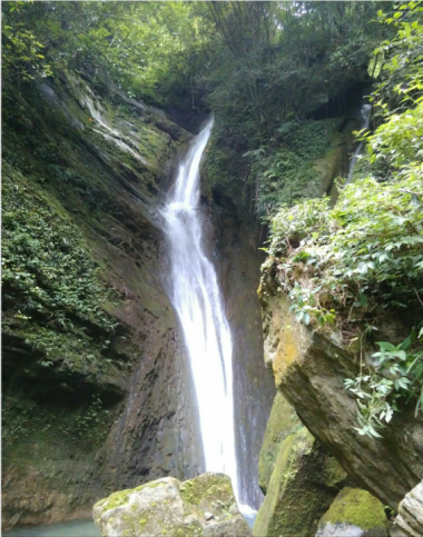 AtalaoWaterfalllies in Lieba Village, Luota Township.It is exposed on the stratain Silurian system. Lithologically, the strata are made up of sandstone, siltstone,andargillaceous siltstone, etc., with a flat and gentle occurrence. In terms of structure, it is located at southwesternbackup end ofthe northeastward syncline,where fault structureisdeveloped, mainlyrunning in a direction ofnortheast and northwest. The waterfall has a drop of 58m and an overflow width of 1 to 3m. It is a perennial waterfall with a large water flow, offeringa beautiful landscape. The site is a northwestward fracture,alongwhich a high steep ridge is formed. The groundwater is drained into thegulley and merged into a stream, which is blocked bythe steepridge to pour down andform a magnificent waterfall. |