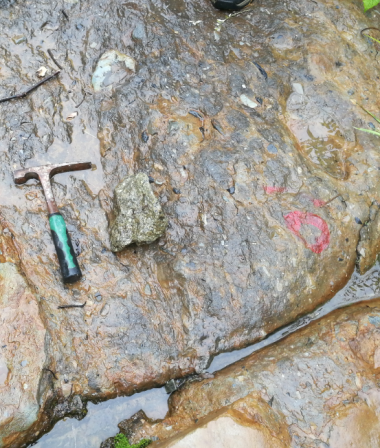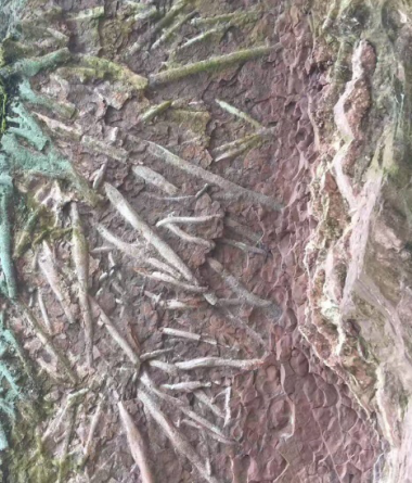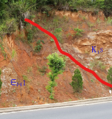 The sectionis located near the Liulangxi Village,XiqiTownship, Longshan County, with an elevation of 380m. The section is about 50m long. The thickness of asingle layer is 3-10cm, which is called the “lower red layer”,corresponding to the lower part of the Telychian Stage inLlandovery Series,and belonging to the shallow sea phase deposit. The section reflects the palaeogeographic environment of the "red layer"in the upper and lower Silurian system. Due to large amount of fine debris containing high valence Fe carried by theriver water, thesedimentsource ismostlyaccumulated in the near-shore seabed where oxidation occurs. Moreover, at that time the area was experiencing a sea regression,some parts of the seawaterwere desalinated,and the lack of rising ocean currents resulted in poor nutrients and low content oforganic matters. Therefore, fewfossils can be found in this formation. |