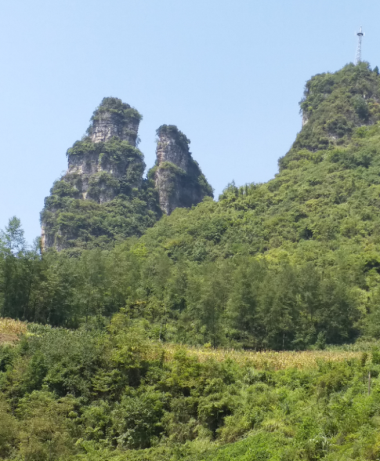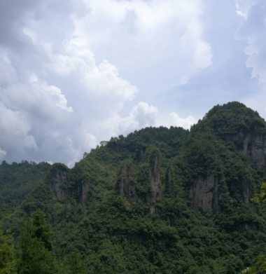 Nongche PeakCluster-Depression lies at 4km northeast ofDianfang Town, Longshan County.It is developed on the limestone in the Upper-Permian Wujiaping Formation (P3w),and inDaye Formation (T1-2d) and Jialingjiang Formation (T1- 2 j) of the Triassic system. Lithologically, it is made up of thin—thick layer of limestone and dolomitic limestone. The peak cluster contains 17 rock peaks, which are linearly distributed in low-lyingnegative terrains.Each single rock peak is 60m-100m high,with adiameterof70~300m. The entire peak cluster extendsforabout 8km,where mountain vegetationisdeveloped. Xindi PeakCluster-Depression is distributed along the core part of Dianfang syncline in the direction of northeast 30°. Due to theeven dissolution of flowing water, a linearpeak cluster is formed. |