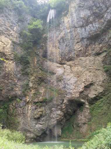 The waterfall is located at the source of the Jipoling Valley, with a drop of about 40m and currentoverflow width of 2m.During the rainy season, the flow increases. The waterfalllooks like a light yarn, with a flow rate of about 10L/S. The lower part is a water pool, which has a square shape,an area of about 600m2 and a depth of 3m. The waterfall flows to the Shuitian River, which is sourced from a spring water in Dashuijing Village. The waterfall isdeveloped in the CambrianAoxi Formation (Є3a). Lithologically, it is made up of thin-medium thick layer of dolomitic limestonemixedwith marl. Karstis poorly developed in the area, andoverland flowsare formed, and result in the waterfall at the edge of the valley. |