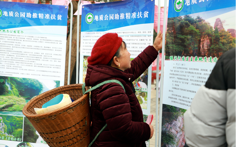 During the event, the staff explained the geological knowledge and distributed brochures on Xiangxi Geopark to the local residents, while holding a competition on geological Q&A to win prizes.
