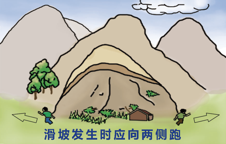 ◆If you are in a landslide area, do not run along the sliding direction of the landslide body. It should run to the sides of the collapsed and landslide body. However, the landslide slides quickly and the running has not come in time. It should be kept in place or hug the big tree.