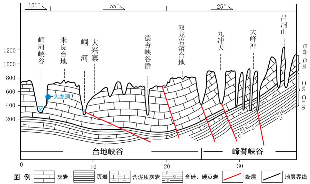 The platform-canyon karst landform is formed in three stages: carbonatite sedimentation, rock def...