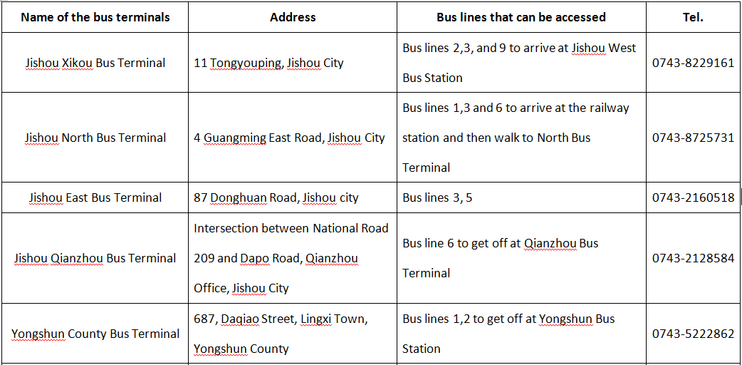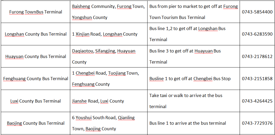 Information on Bus Terminals of Counties and Municipalities under Xiangxi Tujia & Miao Autonomous Prefecture