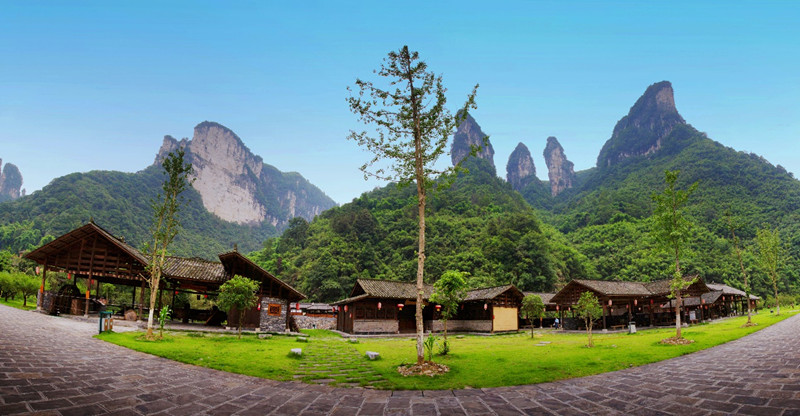 Dehang Karst Wall-Karst Pillar Group is made up of Tianwen (Questioning Heaven) Platform, Sisters Peak, Sima (Four Horses) Peak, Zhuiniuzhu Peak, Zhuiniuhuazhu Peak, Lamei (Wintersweet) Forest, Pangu (Creator of Universe) Peak, Huaping (Painted Screen) Peak and Tianmenhuabi (Heavenly Mural) Peak, etc. (Photo 4-92), which are represented by Sisters Peak and Tianwen Platform.