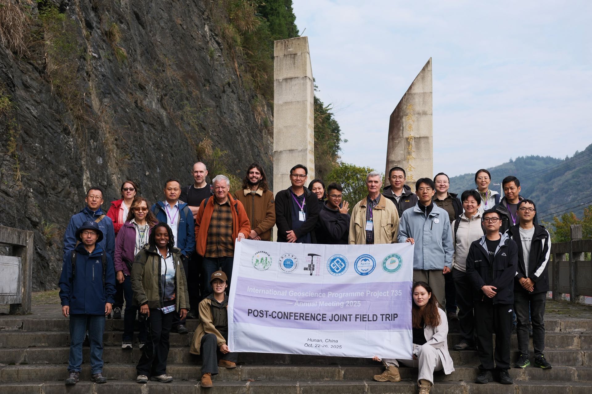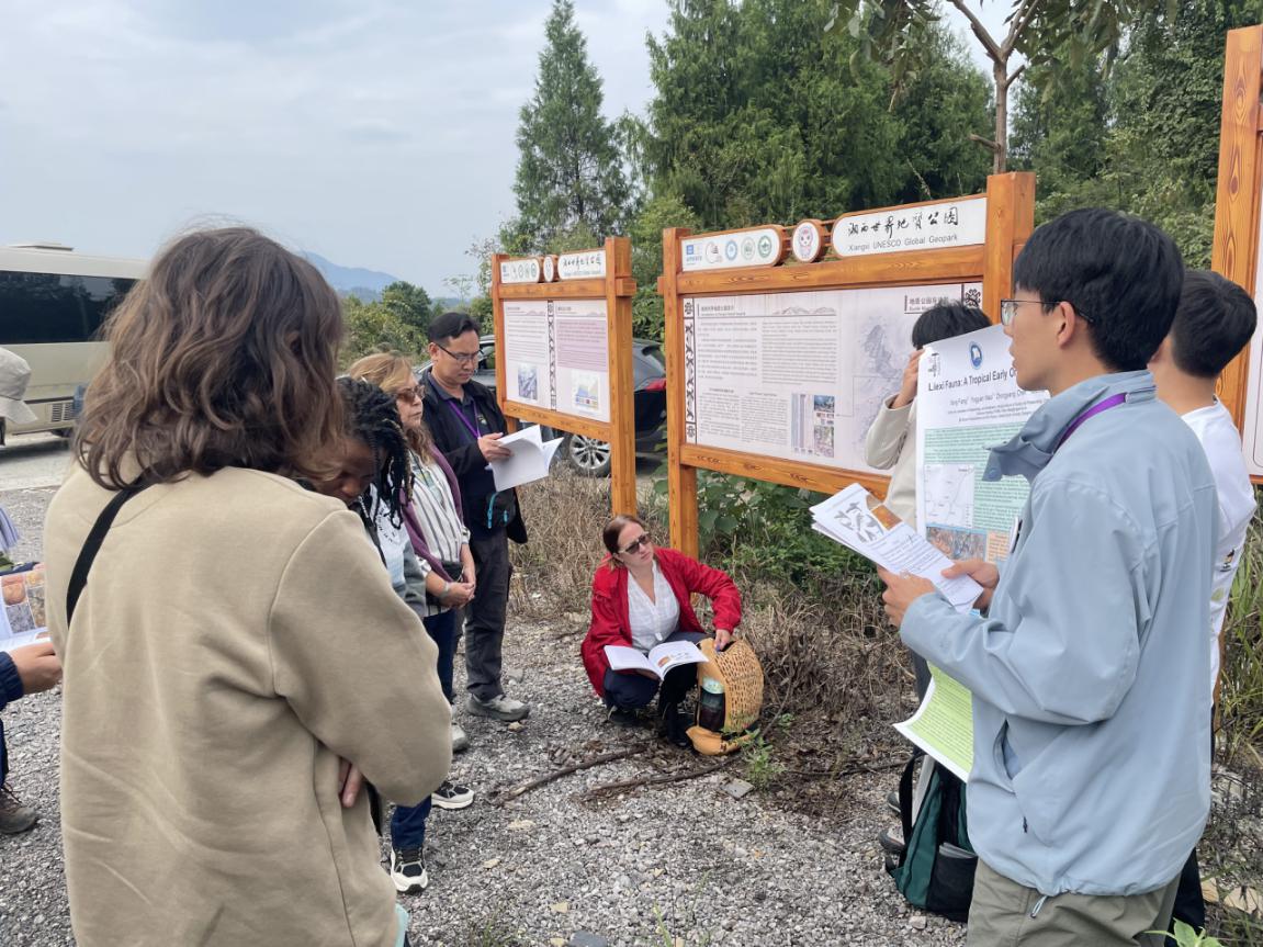 10月24日,中国科学院南京地质古生物研究所联合国内外专家在湘西世界地质公园开展现场考察,重点考察古丈阶“金钉子”、红石林地质遗迹、列夕动物群化石点和湘西世界地质公园博物馆。