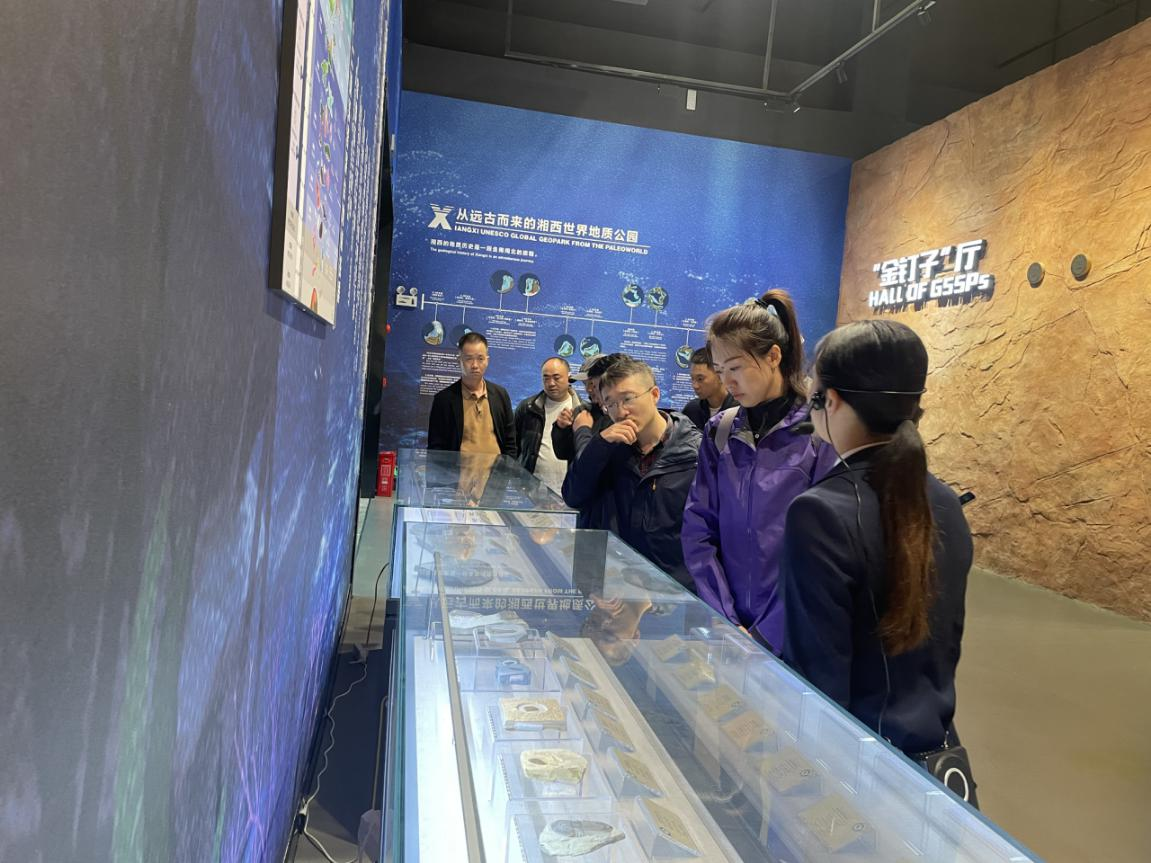 调研组一行先后实地考察了排碧阶“金钉子”、排碧阶“金钉子”展陈馆、古丈阶“金钉子”和湘西世界地质公园博物馆,并在湘西世界地质公园博物馆召开了交流座谈会。
