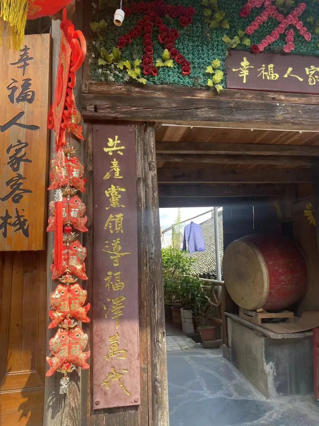 行走在村里,遇见村民龙东阿姨,她在村里开了一间小酒坊,卖自家酿造的酒,而她的酒坊有一个特别温馨的名字—幸福人家。门口贴有对联"共产党领导福泽万代,习主席握手温暖人心。"阿姨脸上美好的笑容与穿梭在酒罐间忙碌的身影正是这个名字的最好诠释。